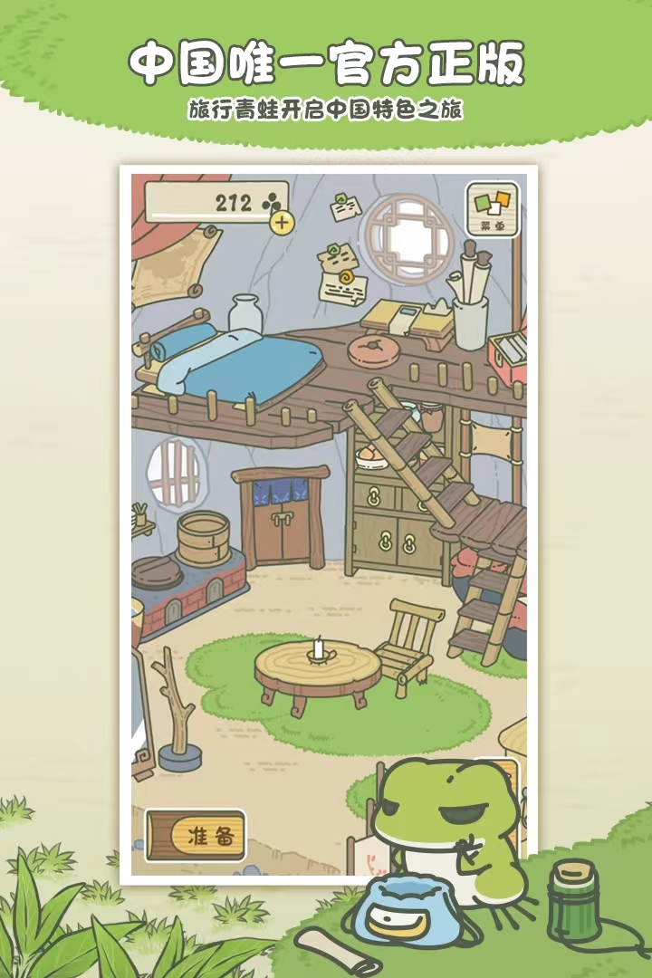 这款游戏中玩家可以体验美好的田园生活,在小青蛙的陪伴下享受宁静时光,充实的过好每一天,学习和旅游更是两不误,宏大的地图当中有很多迷人的风景,游戏中还有拍照功能,随时点击就能留住美好,还能动手制作特殊的风景明信片,在旅途中收集三叶草等道具,运用收集的三叶草兑换喜欢的家具,装扮出温馨的小家。