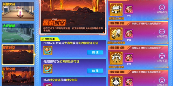 时空刻印可以在探索时空商店中,兑换53级的史诗防具套装与首饰套装。