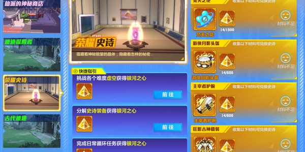 荣耀史诗兑换和仙派的神秘商店不同,荣耀史诗中兑换的是固定的50级史诗防具和武器。这里面的武器、防具,可以说是用户的准**装备,因此需要的银河之心也较多。其中武器需要2500个银河之心,每个防具部件需要1000个。想要兑换荣耀史诗中的**装备,玩家们还是需要努力一点的哦!