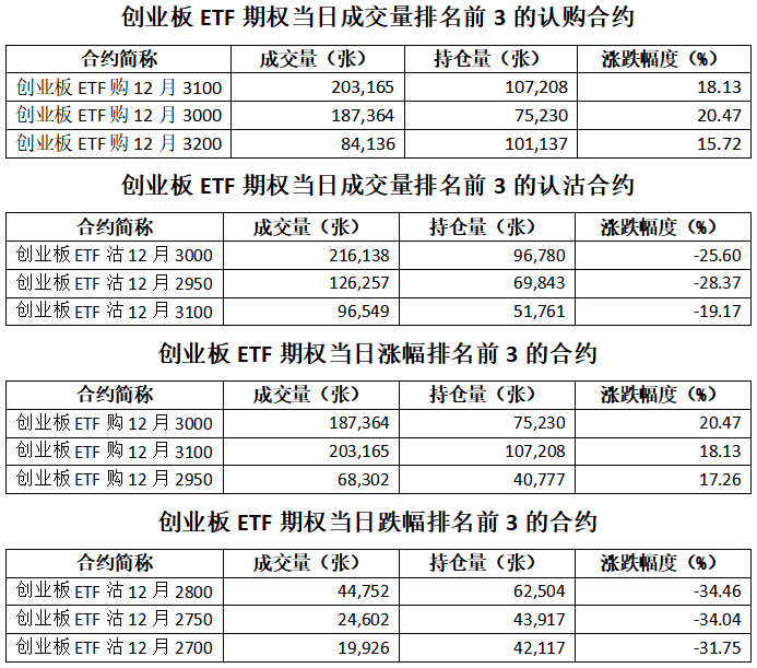创业板ETF期权总成交面额478.05亿元,减少5.07%,期现成交比为0.35,权利金成交额9.92亿元;期权总成交量1,604,261张,减少5.02%,其中认购期权成交量752,017张,认沽期权成交量852,244张,认沽认购成交比率为1.13(上一交易日认沽认购成交比率为1.09)。