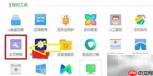 3、 在功能列表中切换至“我的工具”,然后选择“主页修复”功能