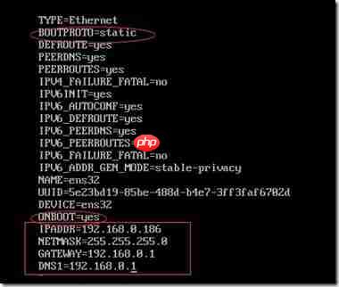 按字符键“i”进入编辑模式,修改/etc/sysconfig/network-scripts/ifcfg-ens32文件内容如下: