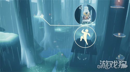 2、花环先祖是集结季的季节先祖【白日梦森林人】,位置在雨林地图,进入水母图之后,找到右侧的树屋,在树屋上就可以找到这个先祖了;